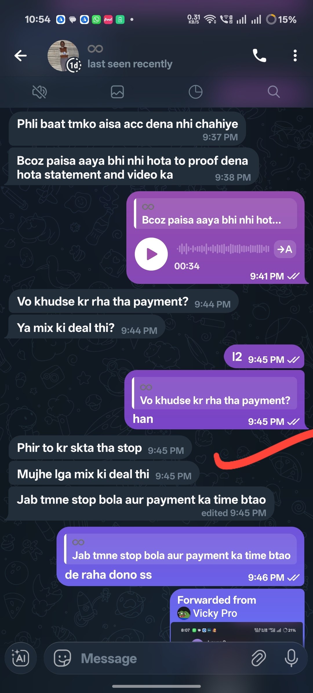 aur tum ko screenshot deke main dubara payment kar raha tha